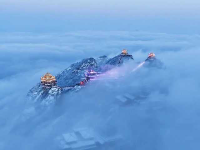 寒假已至 正是全家出游的好时节 巍峨壮丽的老君山 在雪中是梦幻的童话世界 无雪时则是清朗的水墨长卷 每一种面貌都值得全家共同珍藏 冬日晴空下的老君山 阳光澄澈通透 将十里画屏的峰林映照得棱角清晰 如同一幅巨大的水墨长卷 金顶道观群的红墙金瓦与蓝天形成鲜明对比 更显恢弘庄严 而当雪...