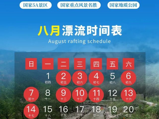 尊敬的各位游客朋友: 为保证广大游客的漂流体验感,现决定调整漂流时间。经公司研究决定,8月6日、7日(本周六、周日)漂流时间调整为上午10:00——下午3:00。 感谢您对太行大峡谷漂流的支持,咨询电话:0372-6082888、0372-6082999、0372-608205...