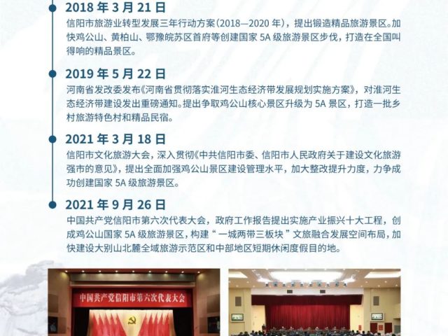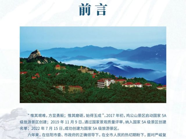 9月30日上午,鸡公山国家5A级旅游景区揭牌仪式在鸡公山主景区隆重举行。河南省文化和旅游厅党组书记、厅长姜继鼎和信阳市委副书记、市长陈志伟共同揭牌。鸡公山景区获得国家5A级旅游景区这一金字招牌,一举实现了信阳市5A级旅游景区“零的突破”,必将进一步推动全市旅游业的迅速发展。 国家...