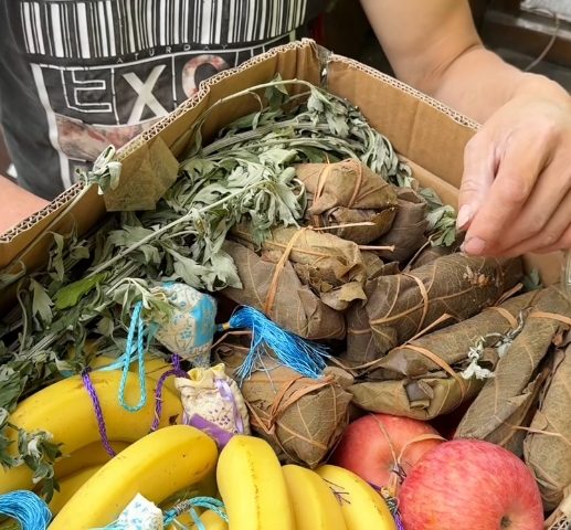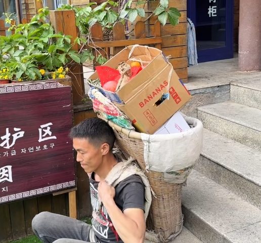 2024年6月9日,端午节临近,在河南省洛阳市栾川县老君山,独臂背山工杨文超得到通知,让去背一批货物到中天门广场,接货人联系方式在运送的箱子里,杨文超就按照要求将货物运送到指定地点,当打开纸箱找联系人的时候,看到里面有端午节的香囊、端午槲粽(槲包)、苹果香蕉等水果,放在最上面的一...