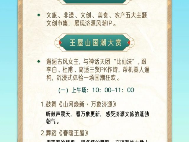 当暮色浸染王屋山巅 一场跨越千年的音乐狂欢即将启幕! 4月8日晚,作为王屋山旅游节的前奏 王屋老街东广场、西广场 两大舞台同步点燃 用音乐编织专属济源的春日记忆 小编为您带来最新节目预告,一睹为快! 🎶演出时间:晚上6:30—9:30 🎶演出时长:3小时 节目单 三小时音乐嗨爆全...