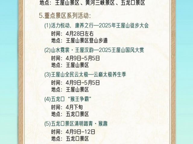 2025王屋山旅游节 4月9日盛大开幕 盛大而独特的文旅盛宴 当数智星火点亮千年文脉 愚公故里即将上演一场虚实交融的文旅盛宴 由济源示范区管委会主办,济源示范区文广旅局、济源市文旅集团承办的2025年王屋山旅游节将于4月9日在王屋山盛大开幕,为全国游客开启一场跨越时空的春日之旅。...