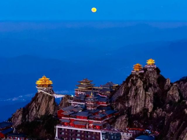 12月5日晚,老君山迎来了2025年度最后一次“超级月亮”奇观。明月从山峦间升起,悬挂在金殿之上,这难得一见的天文景象与道教圣地的古建筑交相辉映,构成了一幅“天人合一”的壮美画卷。 硕大如盘的满月搭配金顶道观群的璀璨灯火,宛如天宫降临人间。 今年的“超级月亮”现象共有三次,而12...