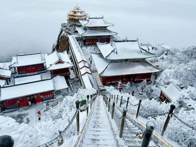 一场不期而至的雪 将老君山装扮成了一个银装素裹的世界 连绵的峰峦、古朴的殿宇、蜿蜒的石阶 统统纳入一个纯净无瑕的琉璃世界 雪后的老君山 变成了令无数人心驰神往的冰雪仙境 漫步雪后老君山 每一步都是风景,每一眼皆是画卷 红墙金瓦的道观殿宇被皑皑白雪温柔覆盖,屋檐下悬挂的冰凌晶莹...
