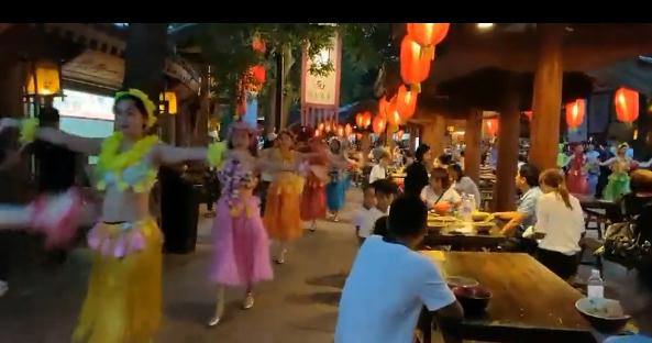 当手舞足蹈、欢乐蹦跳的大宋子民从人群中突然出现,与游客们一同狂欢、舞蹈,闹至通宵,恍然间,好像真的回到了千年前的大宋盛世东京城。