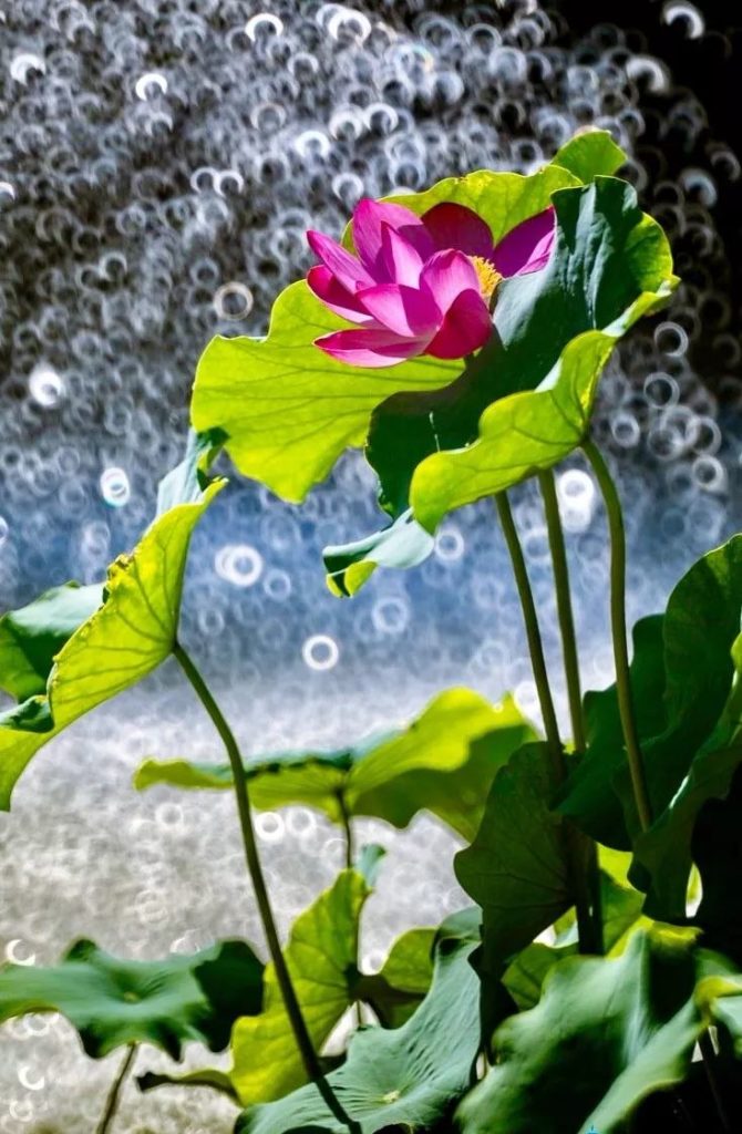 天空飘着小雨,雨滴打在荷叶上,顺着叶脉慢慢滑落下来,水面随之泛起层层涟漪。那一幕的清新脱俗,足于融化你的小心脏。