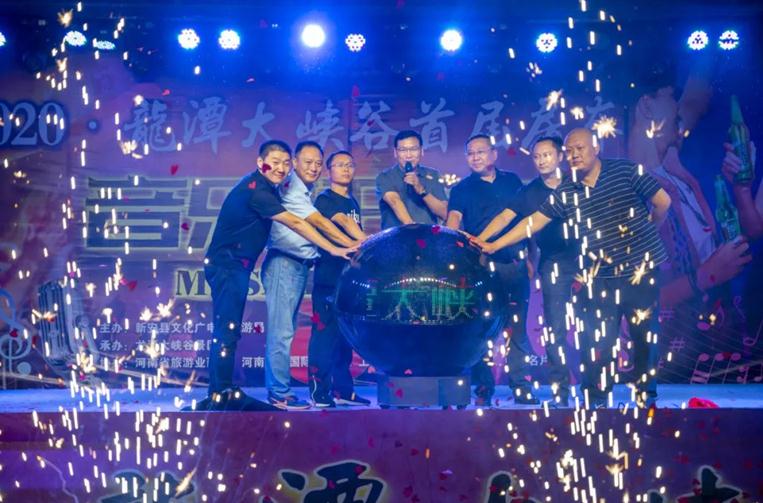 本次音乐狂欢节由新安县文化广电和旅游局主办。启动仪式上,石井镇镇长高亚涛致欢迎词,新安县文化广电和旅游局党组书记、局长游江涛带领嘉宾共同按下启动球,宣布2020·龙潭大峡谷首届房车音乐狂欢节正式启动!