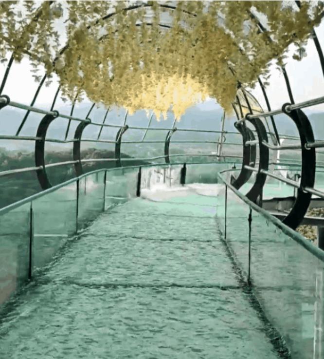 全国首座“会碎”的玻璃桥 ,全国首座“会湿身”的玻璃桥