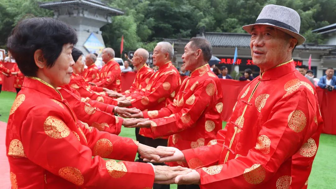 重温峥嵘岁月,迎接夕阳红。在老君山携手入场、行夫妻对拜、挑盖头、执手礼、后辈献花多个环节下,见证了这28对老人们半个世纪的爱情。