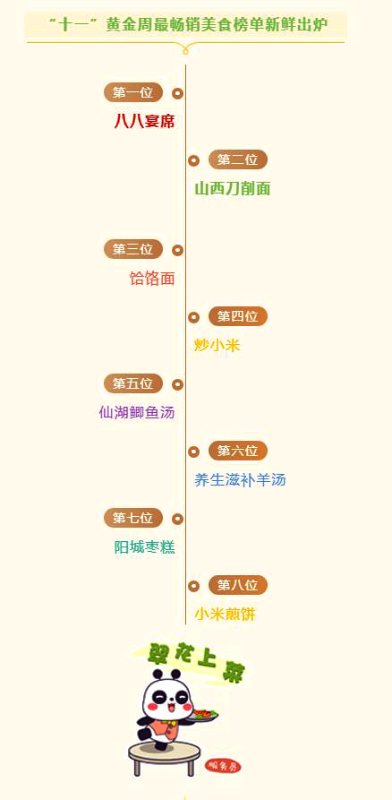 4 小米煎饼的主料是金黄色的小米,它含丰富的蛋白质、脂肪和维生素,阳城煎饼的特点就是营养价值高、气香味醇,松软适口,配上小米稀饭或杂格,就更绝了。 转载请注明来源:风光网视 » 厉害!国庆美食排名榜出炉,这个美食竟然得榜单第一?