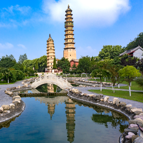 近处,双塔倒影湖中