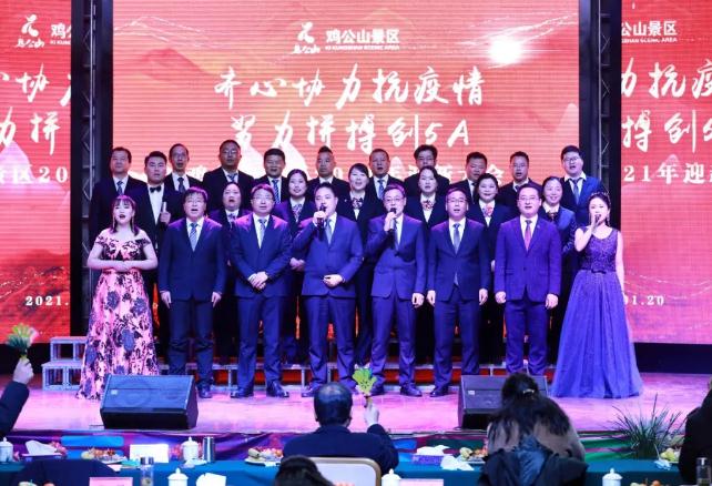 2020全国被疫情按下暂停键的一年,已经悄然过去,我们响应国家政策,共同面对疫情,齐心协力,打好了公司的防疫战。在大环境受到重创的同时,我们奋发图强,开拓创新,在全体干部职工的共同努力下,我们取得了一个又一个的胜利。 充满希望和挑战的2021年已然到来。我们将继续发扬鸡公山人勤劳、务实、纯厚的优良传统,再接再厉,用勤劳和智慧为这片土地浇灌出更为丰收的硕果。 1月20日,“齐心协力抗疫情,努力拼搏创5A”鸡公山2021年迎新会在鸡公山万国文化演艺中心顺利举行!根据防疫相关要求,此次迎新会在会务组织上有不少变化。我们严格控制参会人数,在会场入口处设置体温检测岗,提供一次性口罩、免洗手消毒凝胶,供参会人员使用,严格控制参会人数,科学、精准的防疫保障贯穿始终。 我们充满激情,满怀信心,用崭新的面貌和姿态来迎接更加美好的未来!