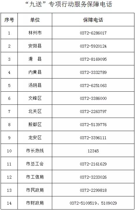 为深入贯彻落实党中央、国务院和省委、省政府决策部署,切实做细做好各项服务保障工作,让广大人民群众特别是外地留安务工人员度过一个健康安全、欢乐祥和的春节,市委、市政府决定在全市开展“九送”专项行动,现将有关事项通知如下。
