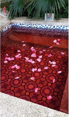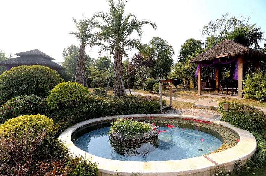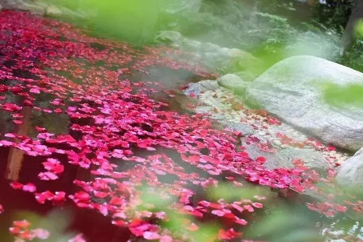 温泉池中的春意盎然之色。