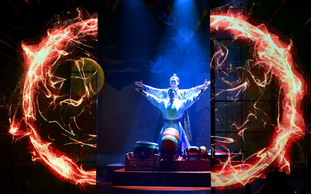 传承中国传统文化精华展现千年时空亘古遗韵人类非物质文化遗产东仓鼓乐催泪归来唐代宫廷燕乐《鼓》以沉浸式舞台剧的叙事方式,讲述唐长安一天赋少年历经考验成长为一代传奇鼓师,在玄宗千秋寿宴上大放异彩的故事。
