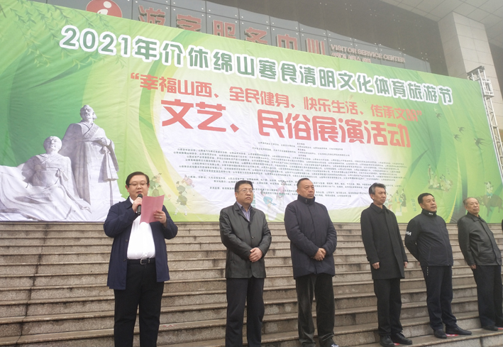 又是一年春来到,又是一年寒食节。4月2日上午,2021年介休绵山寒食清明文化体育旅游节在国家5A级旅游景区山西介休绵山景区盛大开幕。此次以“坚定文化自信  文体旅融合发展”为活动主题,由山西省民间文艺家协会、三晋文化研究会、山西省体育总会、山西省旅游商会、介休市文化和旅游局、介休市绵山风景区开发有限责任公司等单位共同举办。