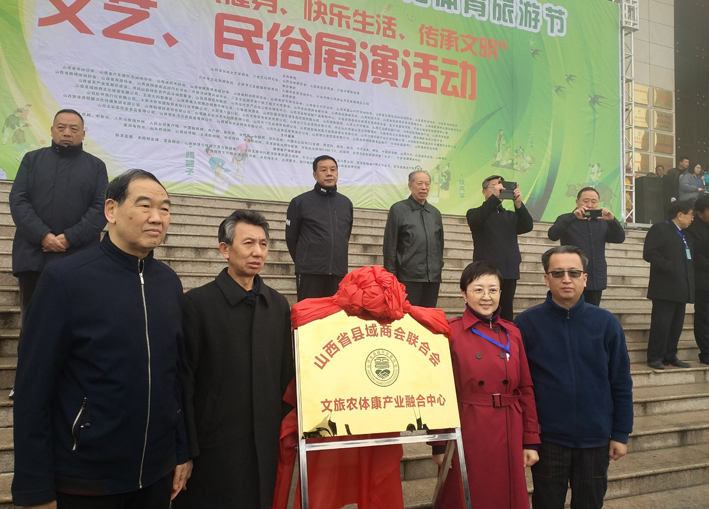 开幕式现场,“山西省县域商会联合会文旅农体康产业融合中心”举行揭牌仪式,同时还进行了“幸福山西、全民健身、快乐生活、传承文明”为主题的文艺、民俗展演活动。