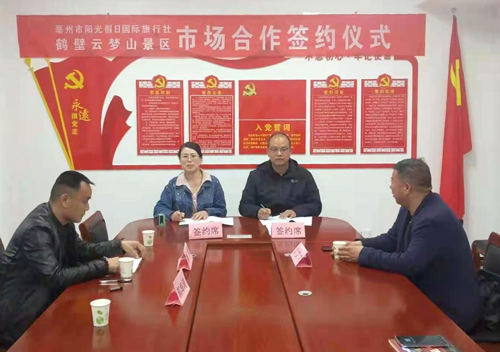 4月13日下午,安徽省亳州阳光假日国际旅行社与云梦山景区合作签约仪式在云梦山举行。
