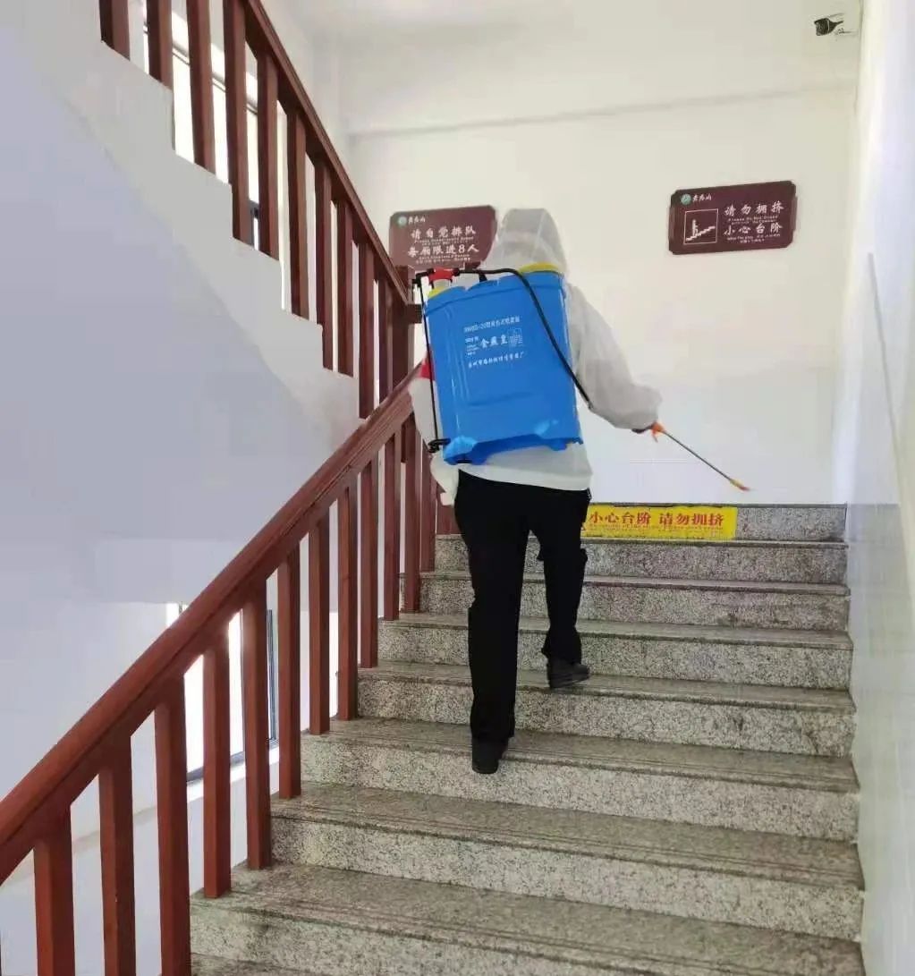 景区第一时间升级防控措施,落实、排查、登记、上报,及时掌握景区工作人员的最新动态;党员冲锋在一线,卡点值守,构建联防联控;每日对景区进行全面消杀,确保人员安全、环境安全。