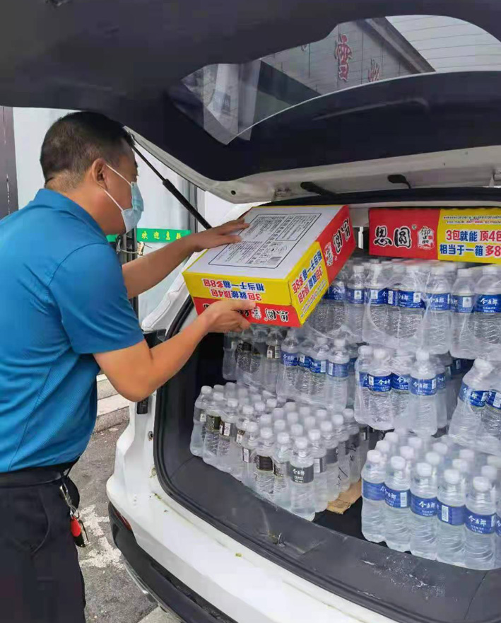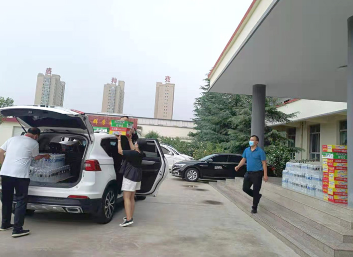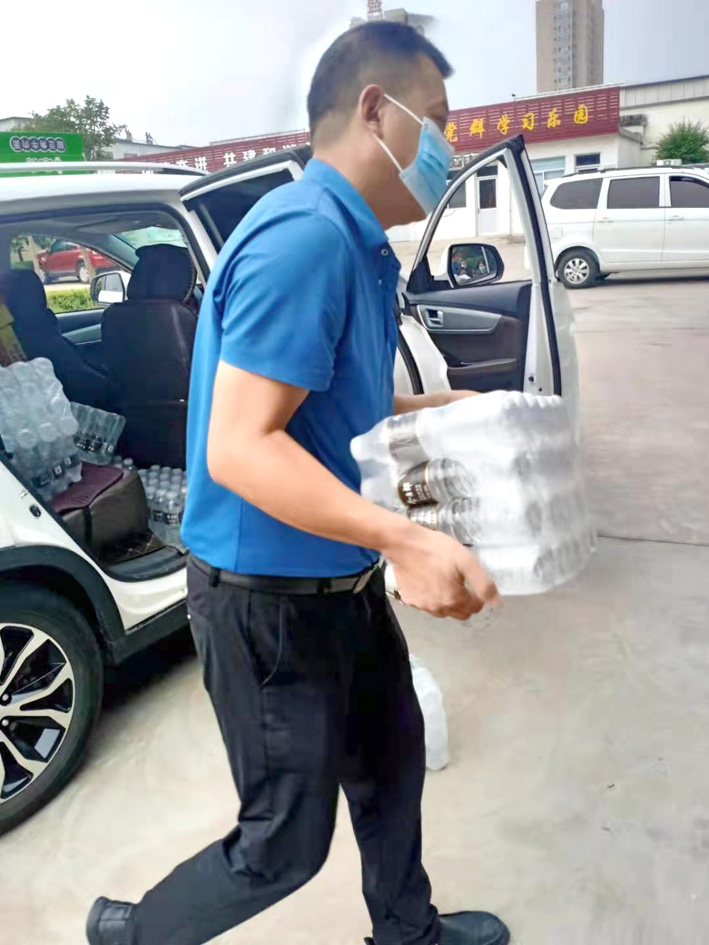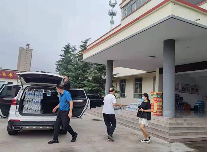 8月12日,林州白雪烩面总经理孙红喜一行来到李庄居委会,捐赠方便面、矿泉水等一批爱心物资,表达他对疫情防控一线工作人员的深深敬意。