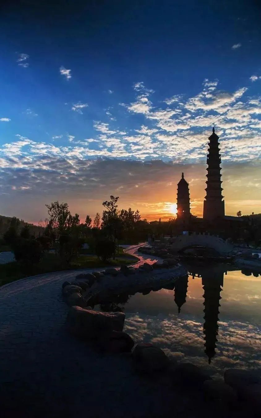 夕阳西下,柔和金光铺满庙宇,
