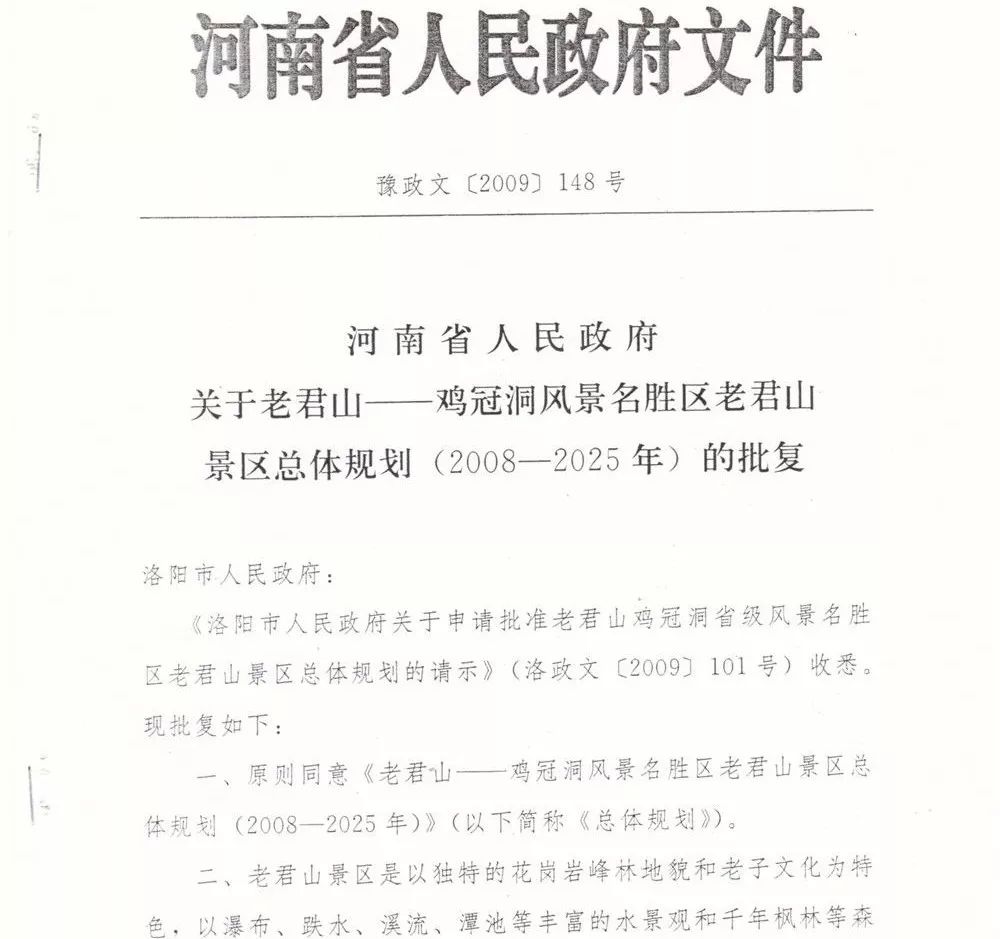 2009年10月26日,河南省政府批复老君山总体规划,标志着老君山景区从规划阶段正式进入建设时期,之后的发展历程中,也诞生出“老君山速度”、“老君山人”这样极具老君山精神的代名词。