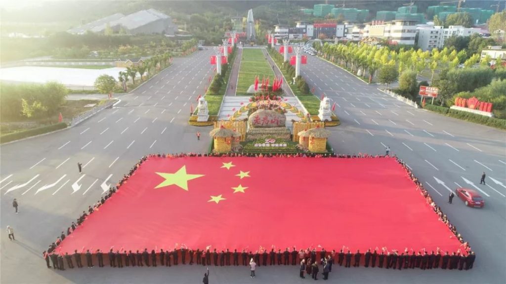 庆祝建国70周年960平方米国旗亮相老君山。国家原副主席李源潮到老君山考察。