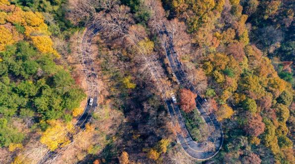 作为南北分界的鸡公山,秋天的景色更像是被打翻了染色盘的画板,被大自然这支神笔随意的勾画出一幅幅自然派之画。北方有它的银装素裹,南方有它的橙黄橘绿。
