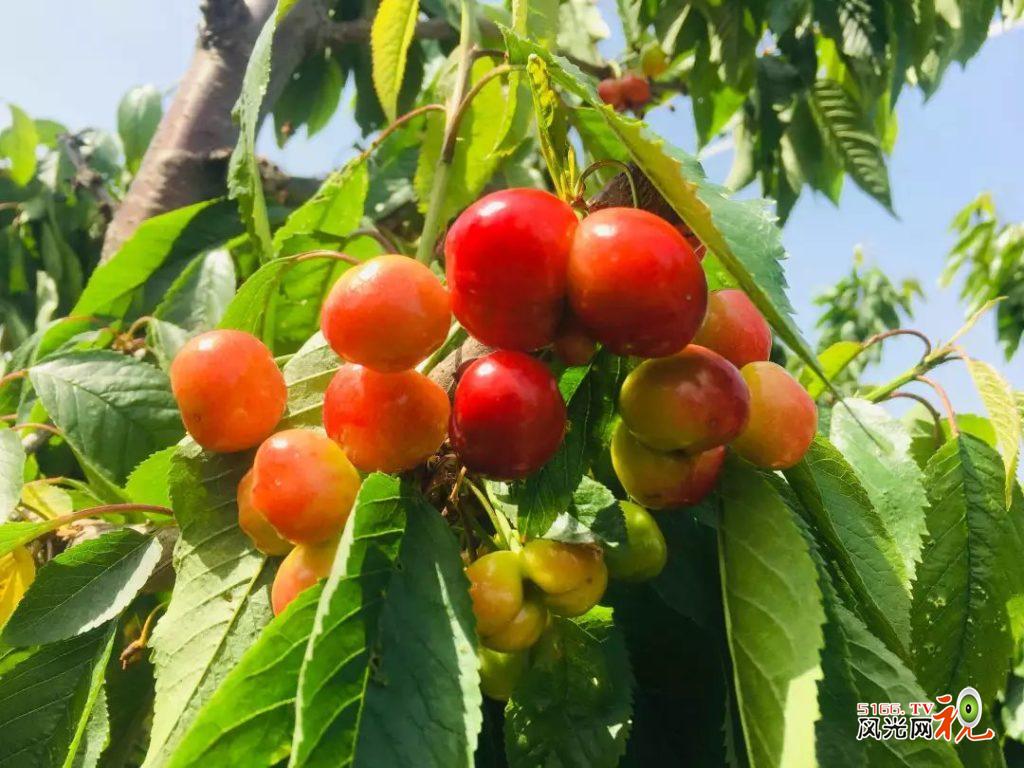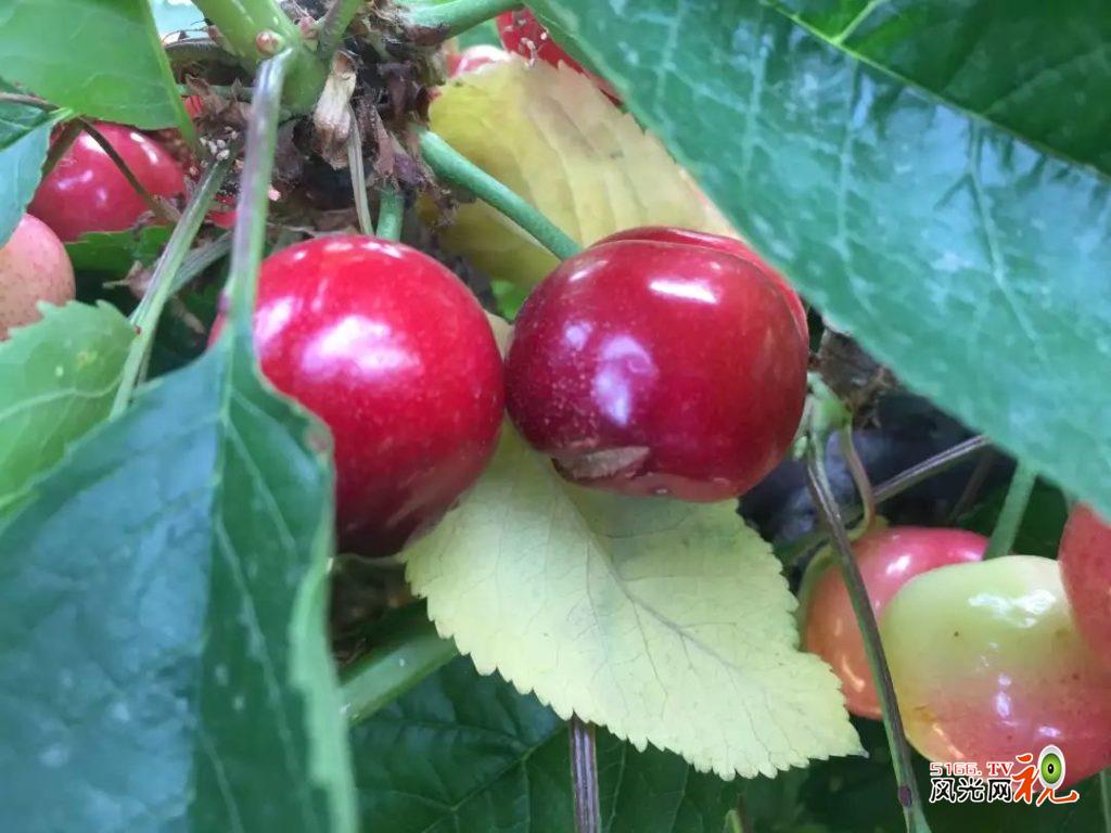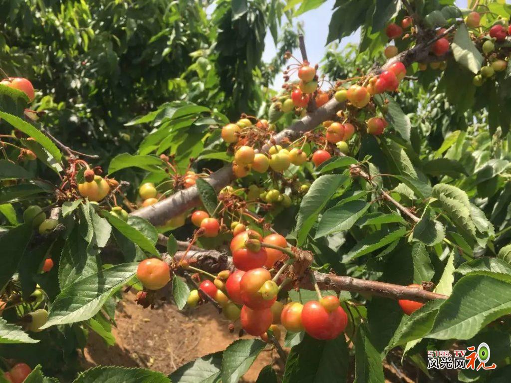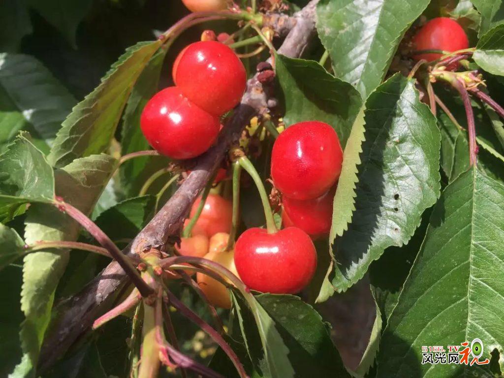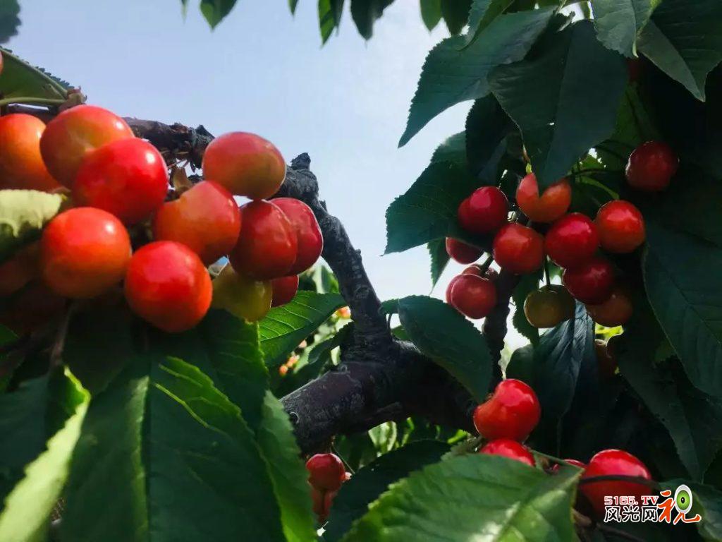 没错,这就是传说中的峄山大樱桃,红彤彤、瞪着那蓝洼洼的大眼睛,挂满树梢,它们已经整装待发,