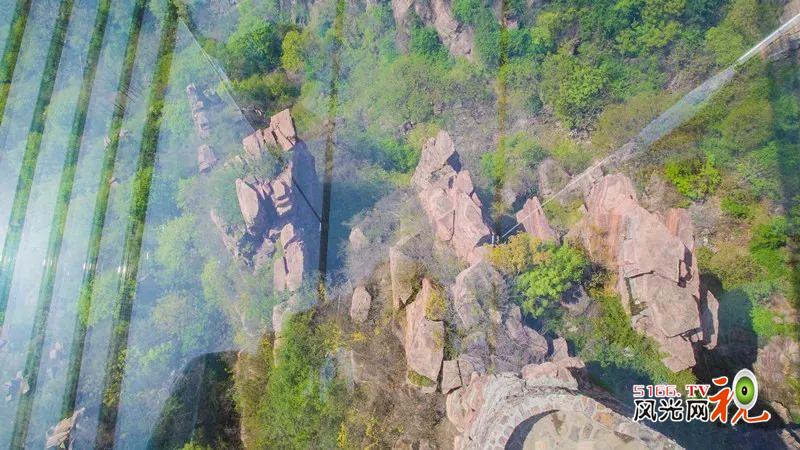 玻璃桥悬于红石峰丛之间,两峰地势险峻、崖壁陡直,中间裂谷横穿。风和日丽之时,踏在玻璃桥上,轿顶山峡谷裂隙尽收眼底,行走其上仿如御风而行,惊险无比,云深雾重之际,于桥上悬空赏景如漫步云端,如若“云中天桥”。置身于峡谷天堑以独特角度感受轿顶山丹霞奇观。