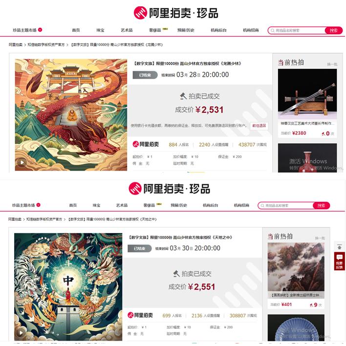 限量10000份的两款嵩山少林主题数字藏品已售罄
