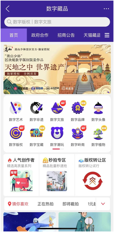 阿里拍卖数字藏品板块首页推荐