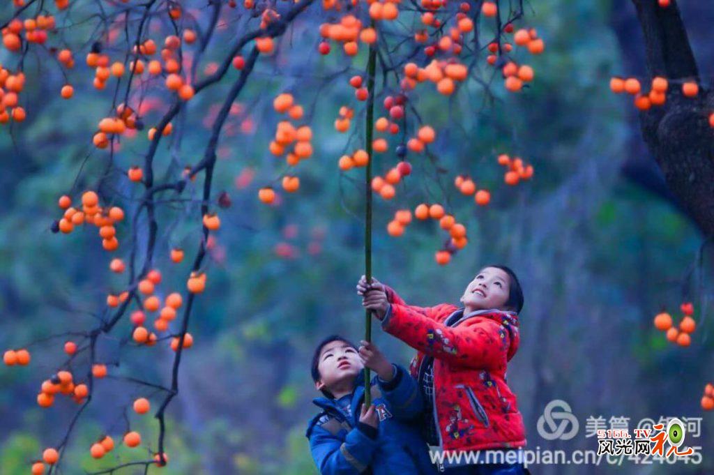 鲁山红石崖柿子红了(鲁山摄影家何进文拍摄)