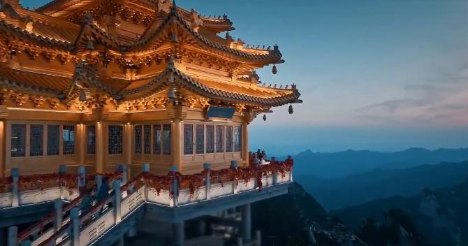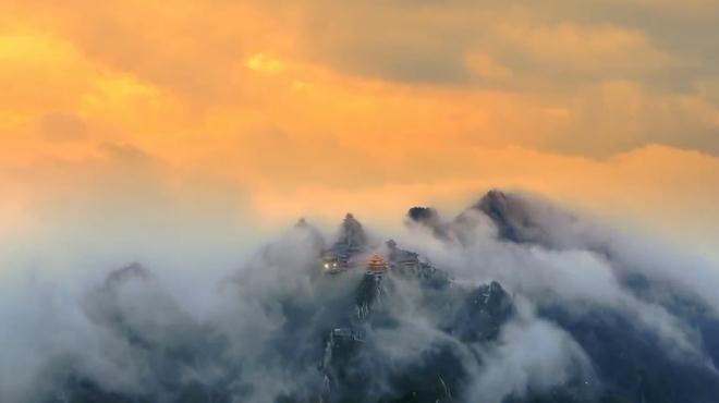 夜幕降临,金顶道观群的灯光如期亮起
