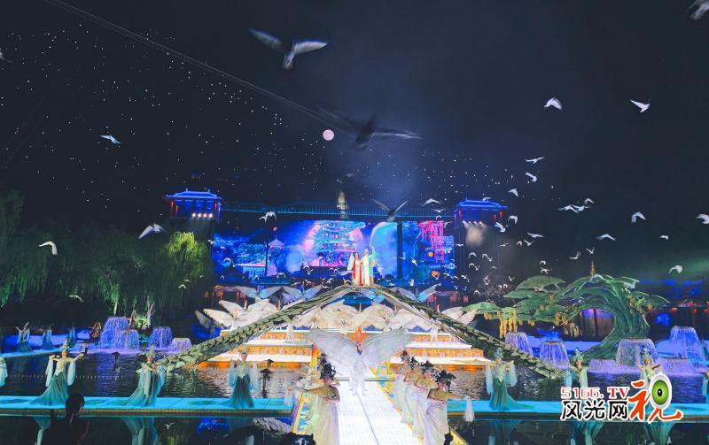 在陕西省西安市临潼区的华清宫景区,打造出的中国首部大型实景历史舞剧《长恨歌》,采用高科技舞美灯光,将历史故事与实景演出相结合,还原了1300多年前在华清池畔发生的这一段感人肺腑的爱情故事。