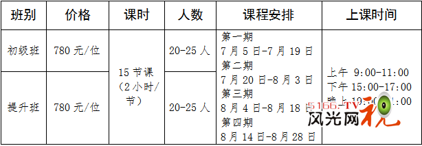 | | | (1.5小时/节) | | 下午15:00—16:30 晚上19:00—20:30 | |