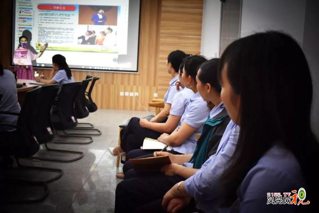 此次培训,不仅从外在上强化一线岗位职工的服务礼仪训练,同时引导职工树立学习意识,不断把知识内化为内在修养,以满足不同游客群体的接待服务要求,真正做到展示景区职工风采、传播景区良好形象、宣扬景区优秀文化。 大家认真聆听并不时做笔记,纷纷表示参加培训受益匪浅