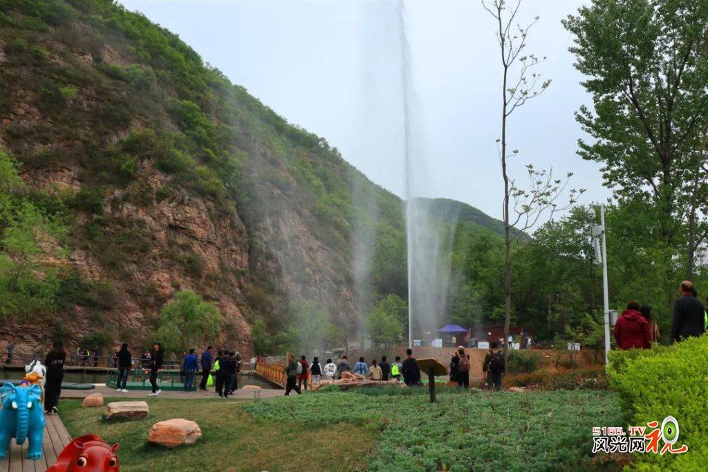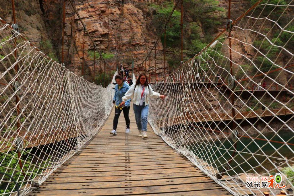 吊桥喊泉,平湖游船,