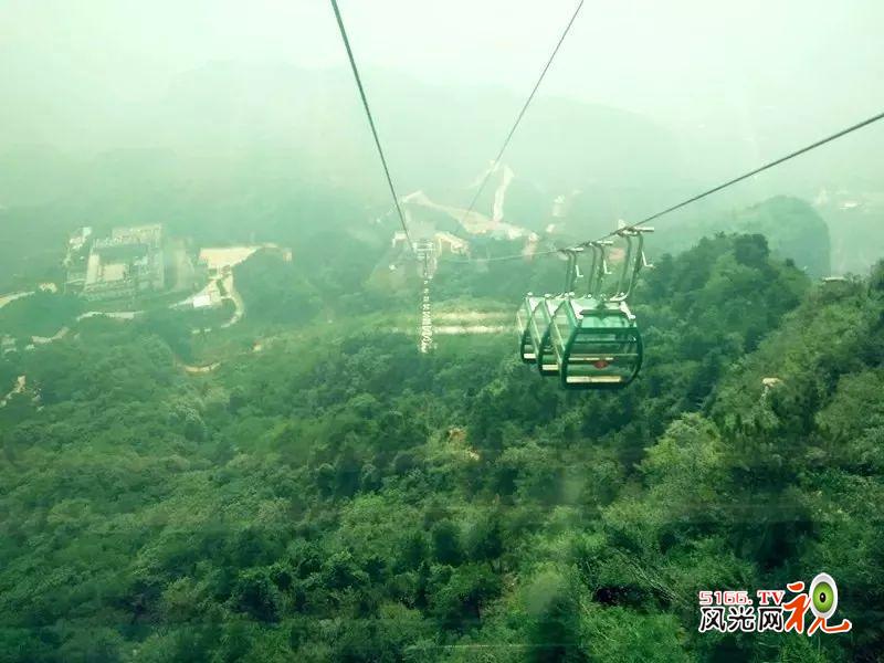 索道分设上、下站,设在陡然高茸、云歇雾宿的龙山山顶,下站位于苍翠葱茏的幽谷栈道傍,乘坐在索道之上,轻松惬意,犹如人间仙境!看尽轿顶山风光,看眼底山石点点,体验一览众山小,极目万里之美感,让索道架起了一条空中走廊。