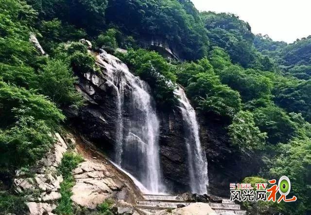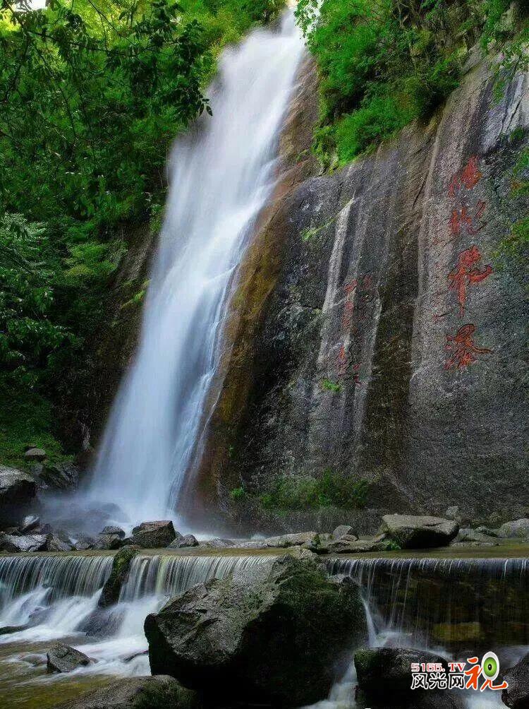 双洞水帘处巨石两分溪流,山开双洞,流水飞瀑,洞隐瀑后。银练悬垂,喷珠溅玉。水声乐奏,回荡峡谷。相传水帘之后东西各有一洞,东通长安,西去雍州,当年姜太公避雨弃舟于此,便由此西洞中隐去。在此处驻足,感受神话扬帆的同时,让空气中氤氲的水雾把你带入清凉的梦幻世界。