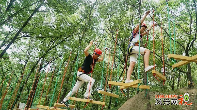 空中钢索、飞天滑板、攀岩墙、独木桥、吊桥、溜索