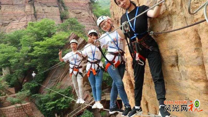 飞拉达即“岩壁探险”,青要山景区“中原第一攀”项目在河南地区率先建成投用,在市场上引起了一场攀岩热。中原第一攀,分体验线,中级线,高级线,难度不同,适应各个年龄段,不同人群的需求。为到访青要山的研学的团队提供不一样的选择。