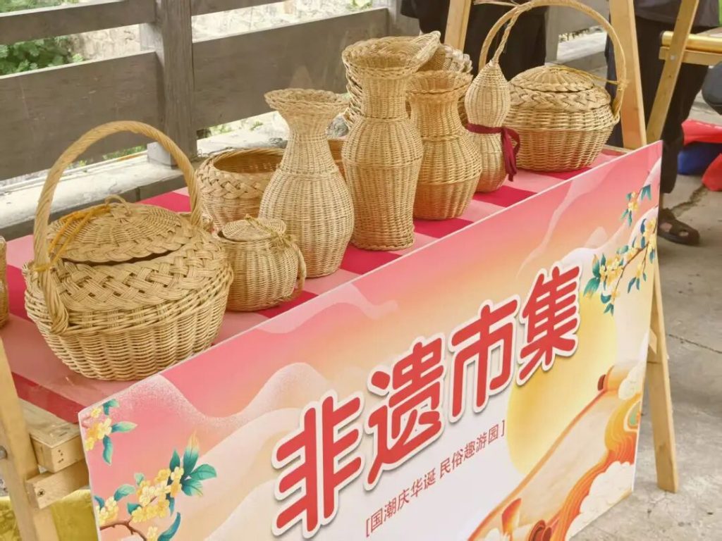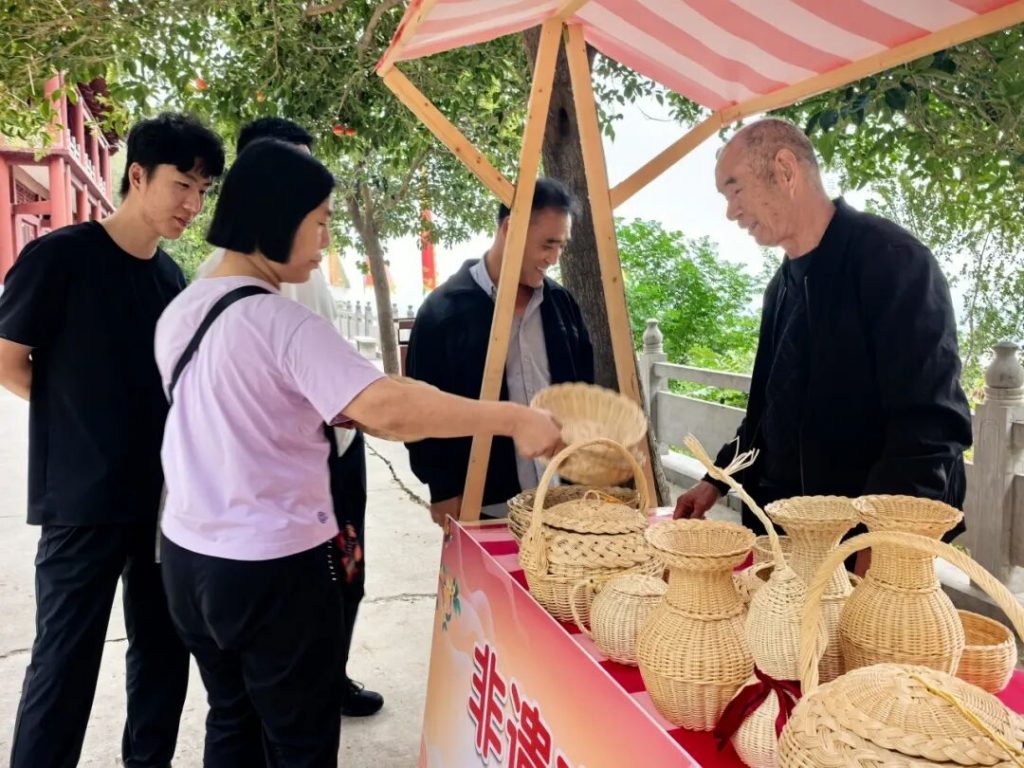柳编摊位上,粗细不一的柳条在手中穿梭,很快化作精致的花篮、收纳筐。