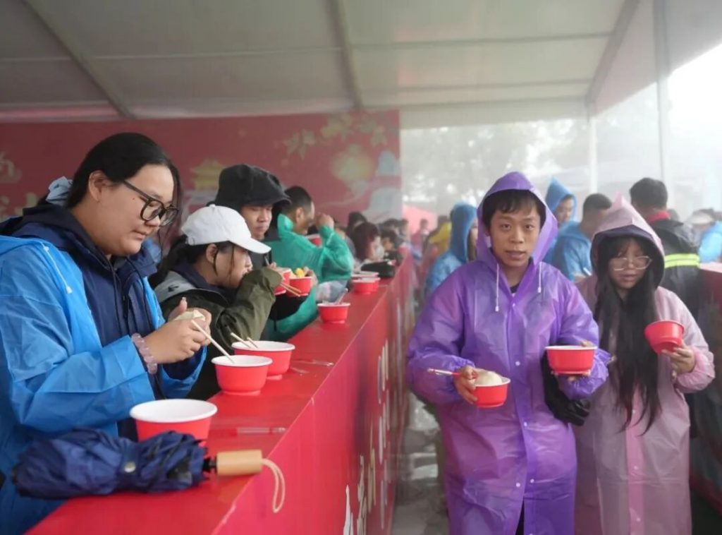 “遇到下雨天气很冷,没想到上来能喝到一碗热腾腾的面条,太暖心了!非常感谢老君山!”一位来自杭州的游客端着热乎乎的面条,在雨棚下激动地表示;“第一次带着家人来老君山,特意来尝尝一元午餐,味道特别棒!”;“这不仅是一顿饭,更是老君山的心意,是今年国庆节最特别的记忆。”许多游客在这次雨中温暖的邂逅后,称“良心景区”、“雨中送暖”,让这个湿漉漉的国庆假日充满了直抵人心的温度。
