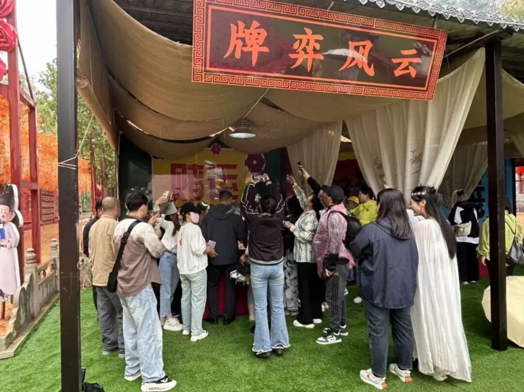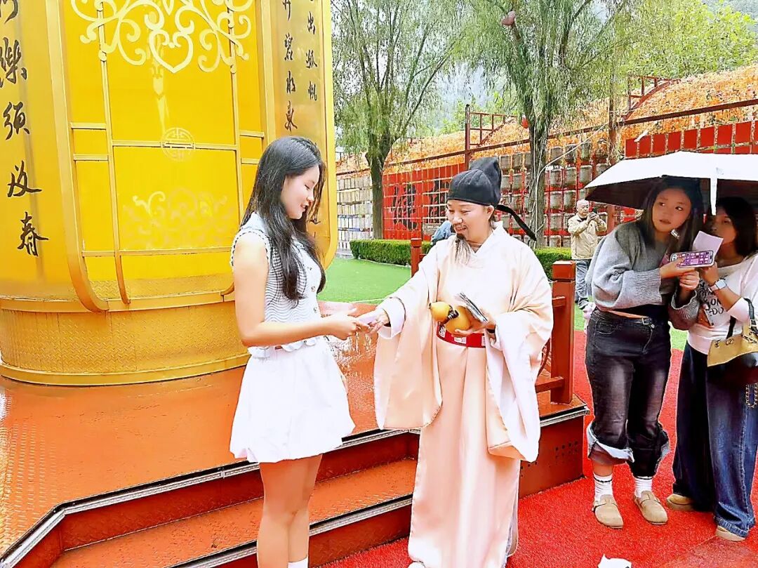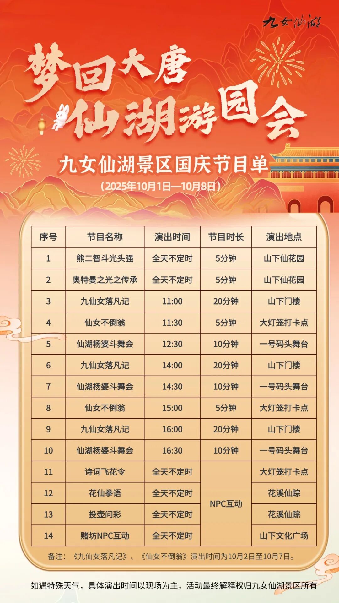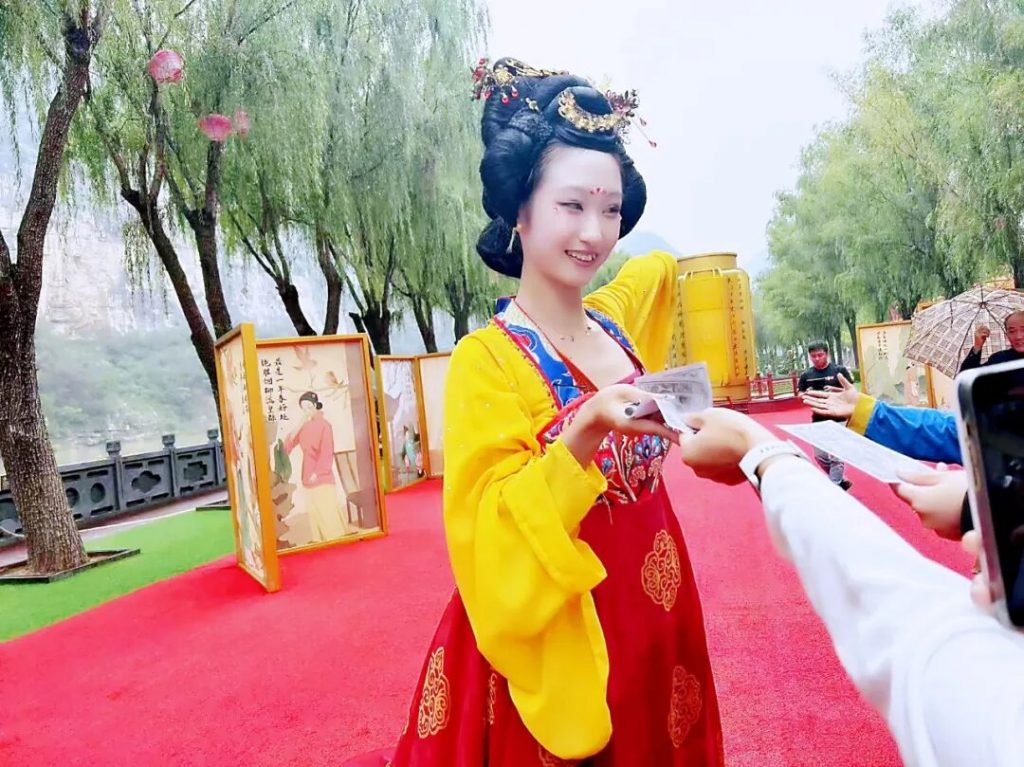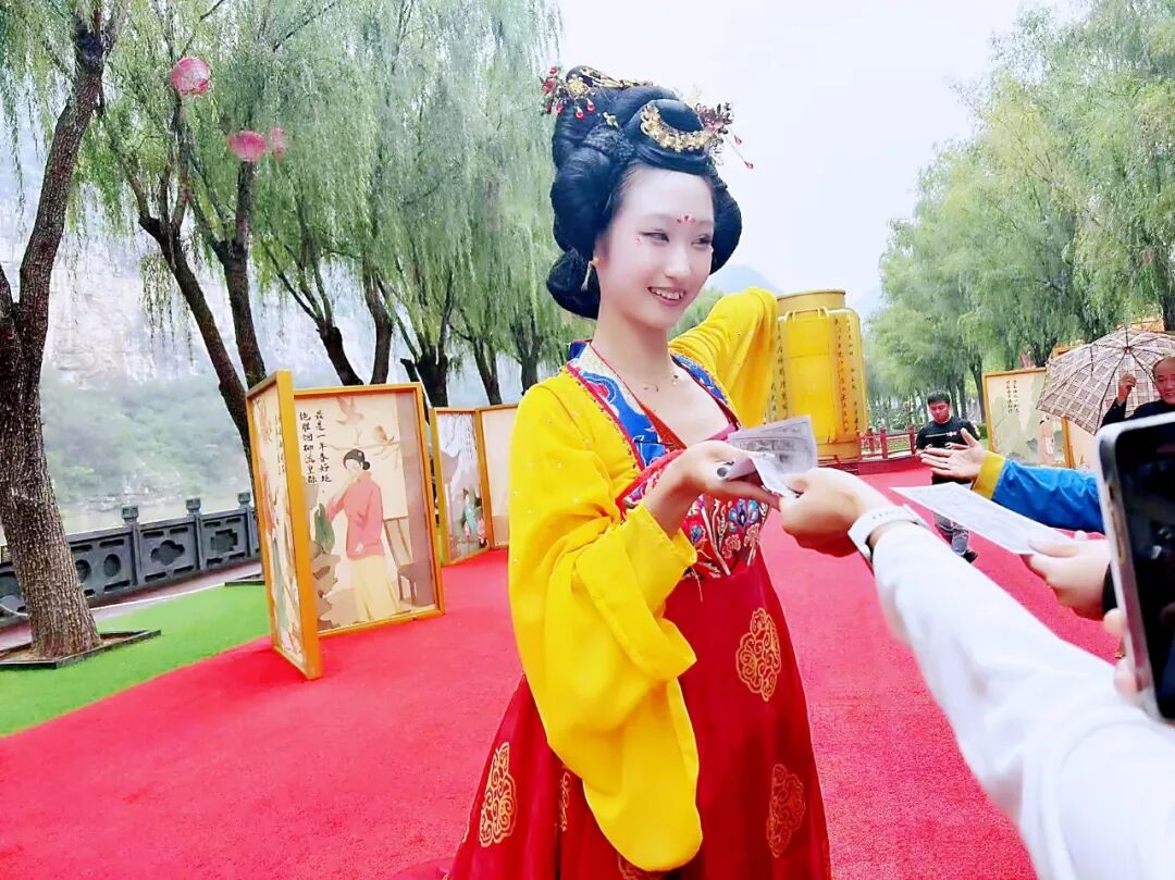 除了欣赏山水美景,当然不能错过国庆假期九女仙湖最新推出的王牌打卡地【幻唐坊,在这里,你可以与各个NPC花式互动赚银票,李白对诗、杨婆斗舞、赌坊开局、投壶互动,玩得不亦乐乎!