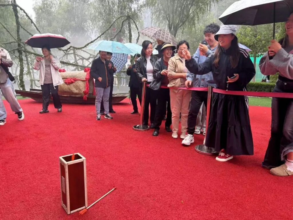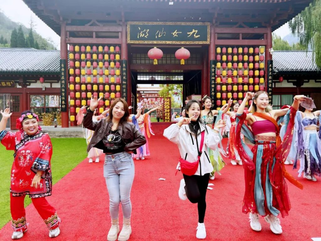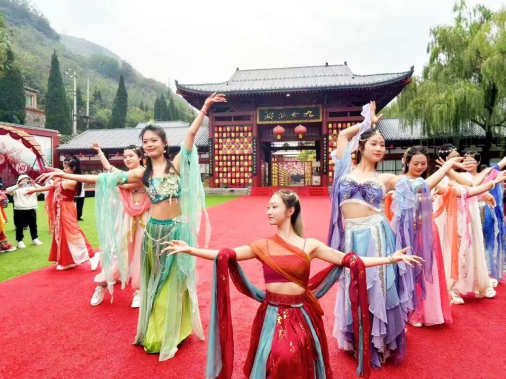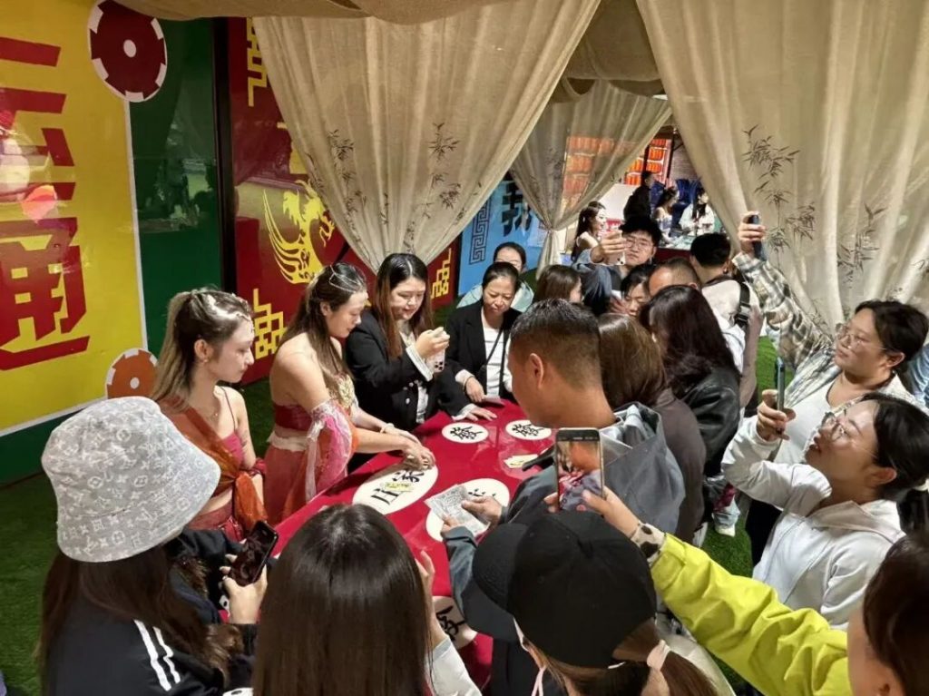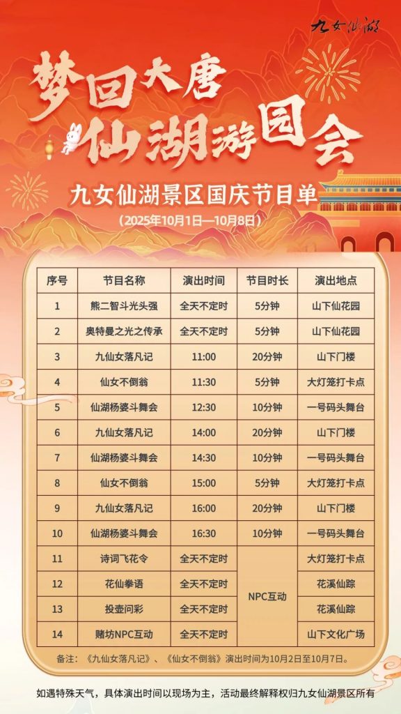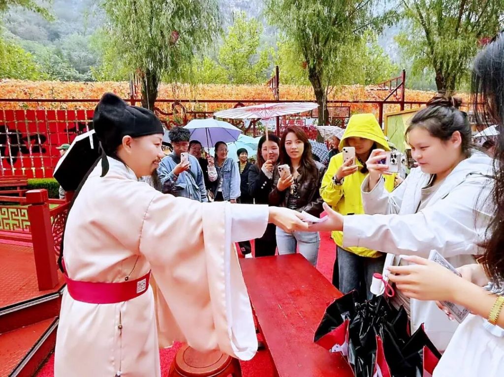 除了欣赏山水美景,当然不能错过国庆假期九女仙湖最新推出的王牌打卡地【幻唐坊,在这里,你可以与各个NPC花式互动赚银票,李白对诗、杨婆斗舞、赌坊开局、投壶互动,玩得不亦乐乎!