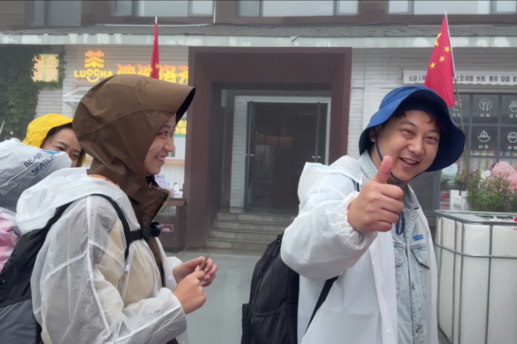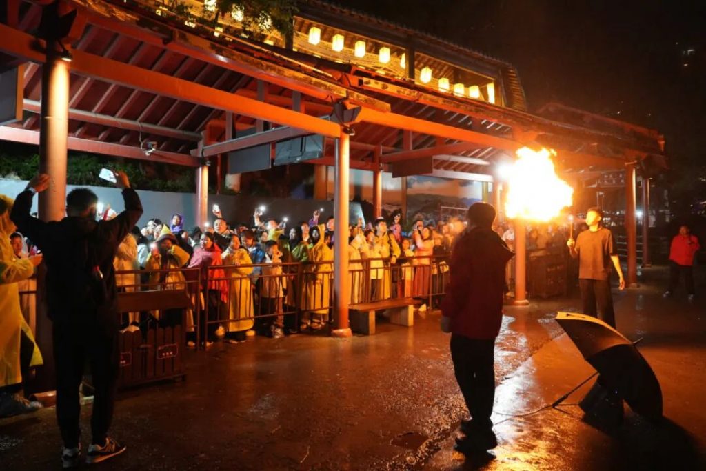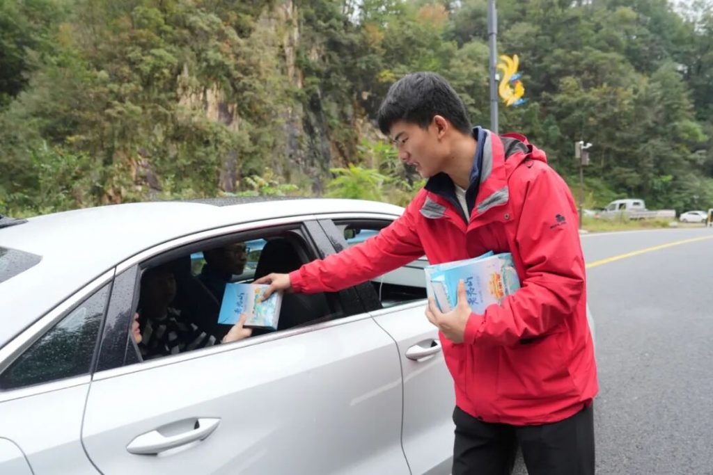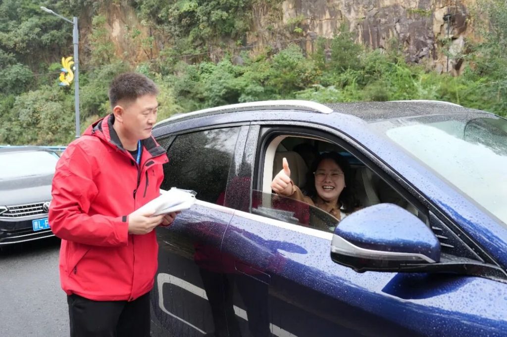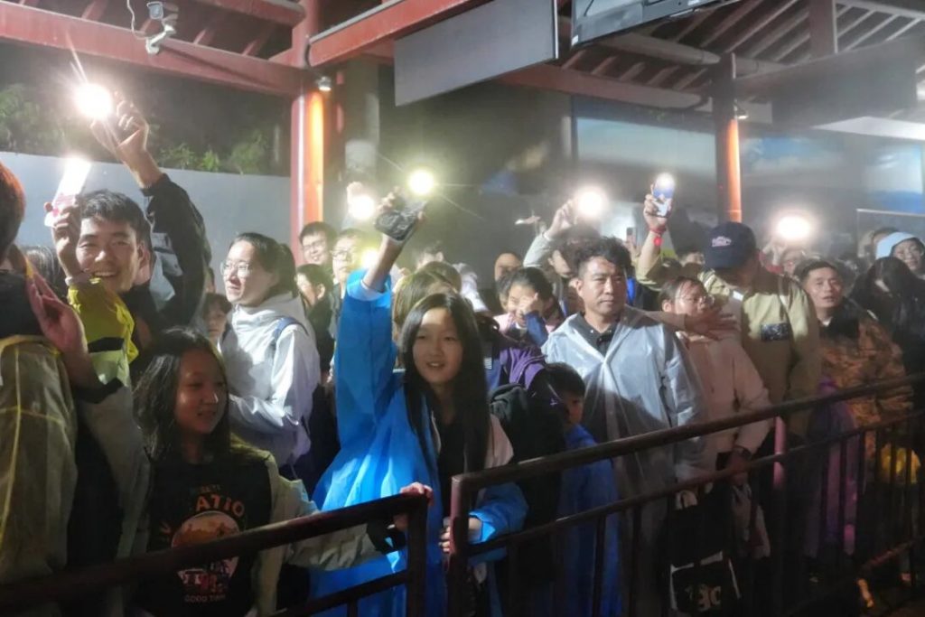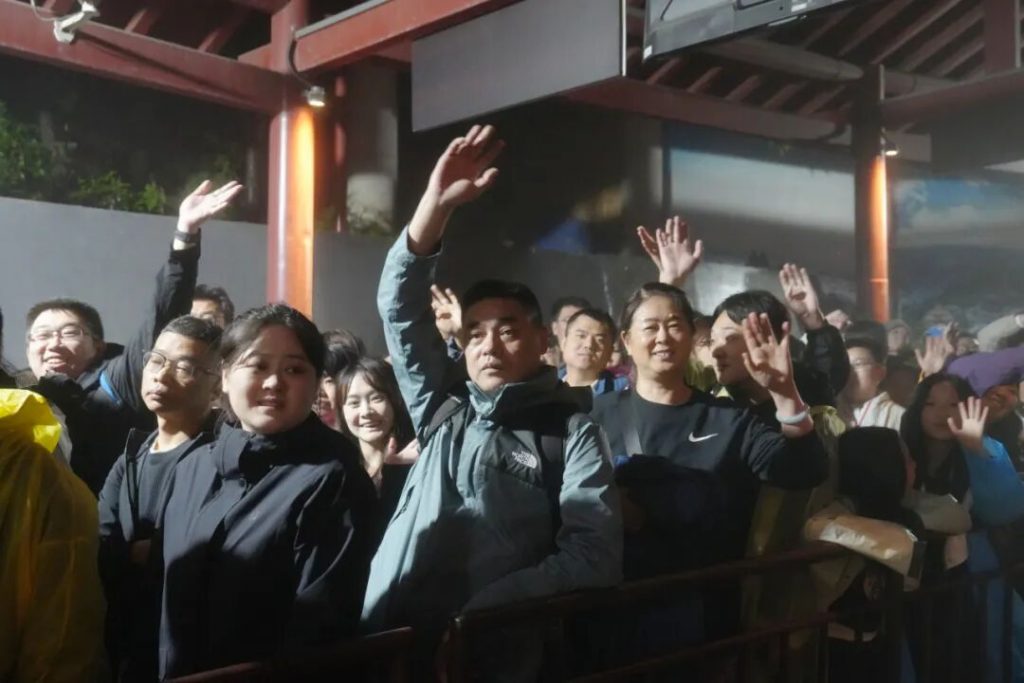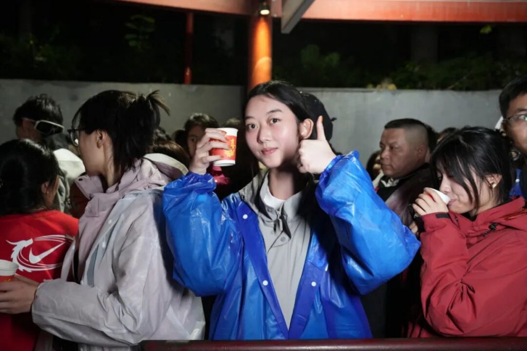 因假期客流密集,许多自驾游客需从远处停车场步行至索道站。为此,景区工作人员特地在沿途为游客送上小礼品。 “虽然下雨,但收到景区送的小礼物,很暖心,点赞!”一位来自沈阳的游客开心地与大家分享;“在下雨天能收到老君山送的小礼品和雨衣,很贴心,为老君山点赞!”;“老君山的服务设施很好,保障得非常到位,很开心!”一份份小小的礼物,承载的是老君山对游客们深深的谢意与祝福。 在索道下山排队区域,长长的队伍本是对耐心的考验,却因一支“老君山欢乐小分队”变成了流动的舞台。工作人员自发组织表演,与游客热情互动。 喷火表演的员工化身“非遗传承人”,烈焰在雨幕中划出绚丽弧线,引得游客阵阵惊呼。“孙悟空”则手持金箍棒穿梭在人群中,与小朋友击掌互动、摆出经典造型,逗得孩子们笑声不断,让等待的时光变得热烈而难忘。 秋雨中的十里画屏,最美的不是山水,而是人。景区工作人员怀抱雨衣,沿湿滑山道快步前行,只为将一件件雨衣送到未带雨具的游客手中,并叮嘱他们注意安全。当雨衣披上身,游客脸上的忧虑化为惊喜与感动。风雨中匆忙的荧光色身影,与游客身上鲜艳的雨衣,共同绘成了老君山这个秋天最温暖的风景。 一位带着孩子的母亲表示:“工作人员浑身都湿透了,却还想着给我们送雨衣,真的很感动。”网友们纷纷点赞:“老君山的贴心果然名不虚传,能为我们遮风挡雨。” 秋雨带来寒意,在下山排队区域,我们深知漫长的等待需要更多温暖支撑。为此,景区迅速熬制了温热驱寒的红糖姜茶,由工作人员一杯杯送到游客手中。 “一下山就能喝到热乎乎的姜茶,感觉整个人都暖和了,你们想得太周到了!”一位双手捧着姜茶的游客感动地说。这杯及时的姜茶,暖的是手,传递的是我们发自内心的关怀。 “十一”假期已经过半