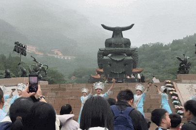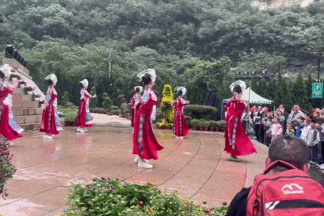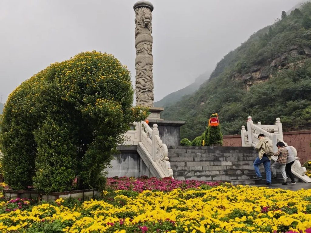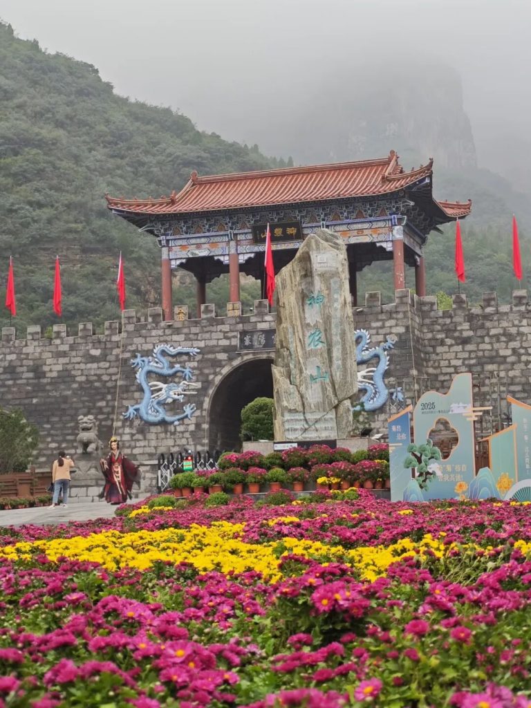 国庆第五天,神农山金秋盛世菊花展终于迎来了最佳观赏期! 从云阳寨一路延伸到神农文化广场,数万盆菊花整齐摆放。 在烟雨中,将这段游览路线打造成了一条温润雅致的 “秋日花廊”。 金黄、橙红、纯白、淡紫、粉白相间的菊花,一朵朵开得饱满又精神,在细雨滋润下绽放出最娇艳的模样。 更让人眼前一亮的是,沿线的菊花丛中还错落搭配着萌趣绿雕,五角星、花瓶、巨龙、大象等造型别致的绿雕与各色菊花在烟雨中相映成趣。 游客们沿着路线漫步,时而在菊花前驻足拍照,时而与绿雕互动打卡,每一处都充满了秋日的温柔与美好。 赏完了菊花展和神农文化广场的节目,不妨再登至山顶,邂逅一场烟雨中的云海盛景。 今日的山顶,水汽与烟雨交融,大片云海在山峦间缓缓升起。 站在龙首台远眺,远处的龙脊长城在云海与雨雾中若隐若现,只露出蜿蜒脊背,让人忍不住感叹 “此景只应天上有”。 无论是特意早起登高的摄影爱好者,还是携家人撑伞漫步山顶的游客,都与眼前的 “仙山” 同框,留下专属的雨天国庆记忆。 国庆小假期已经过半,