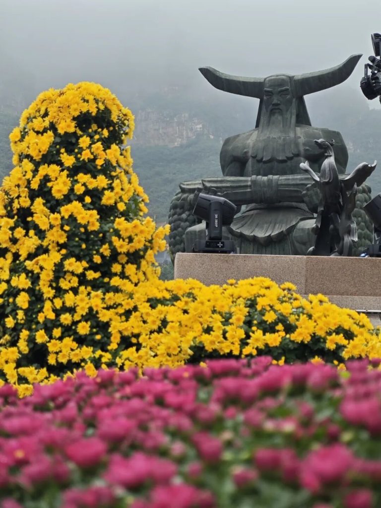 一盆盆菊花从云阳寨到神农文化广场次第铺开;
