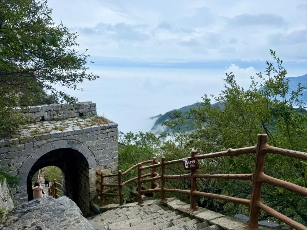 龙脊长城在云雾中若隐若现,
